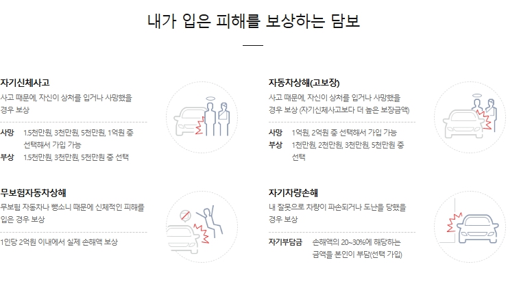 - 🏥 자기신체사고 - 운전자 본인의 상해 보장
